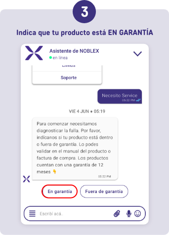 Si tu garantía está vigente, escribinos la palabra Garantía por WhatsApp o Webchat para poder ayudarte a gestionar tu caso.